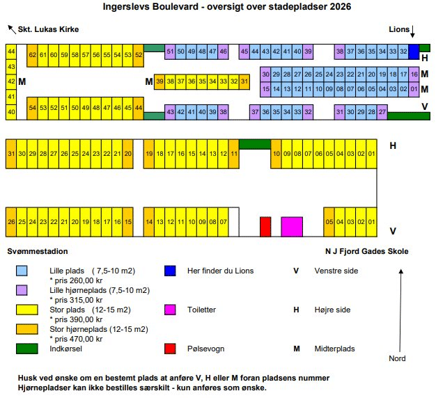 Opstilling og parkering for dagens stadeholdere